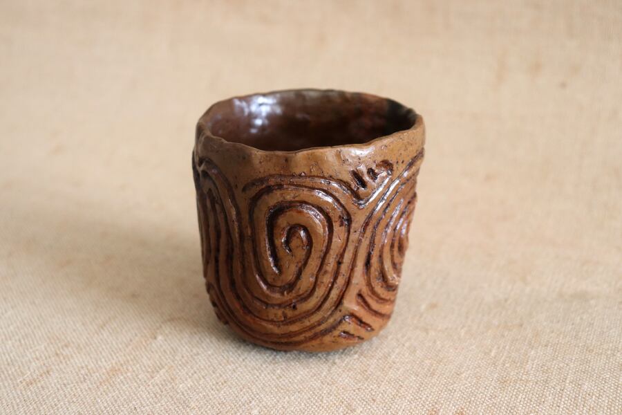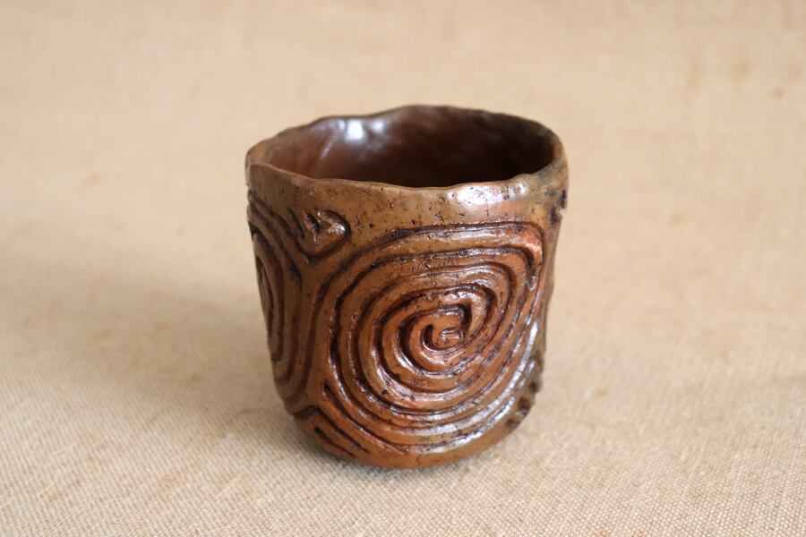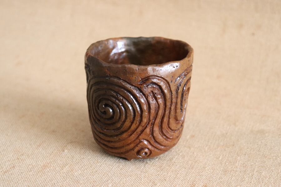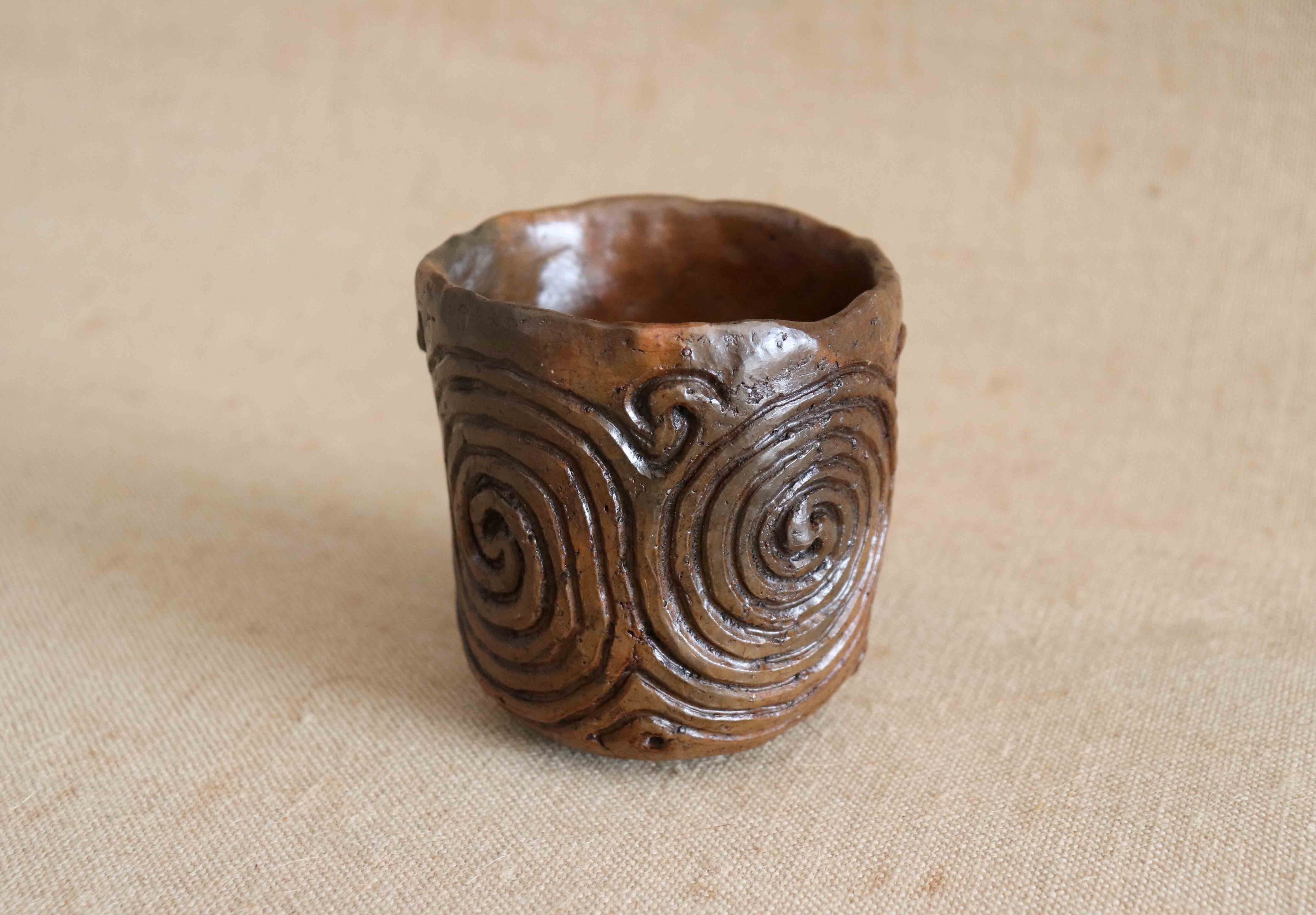 「漆塗渦巻文土器杯」