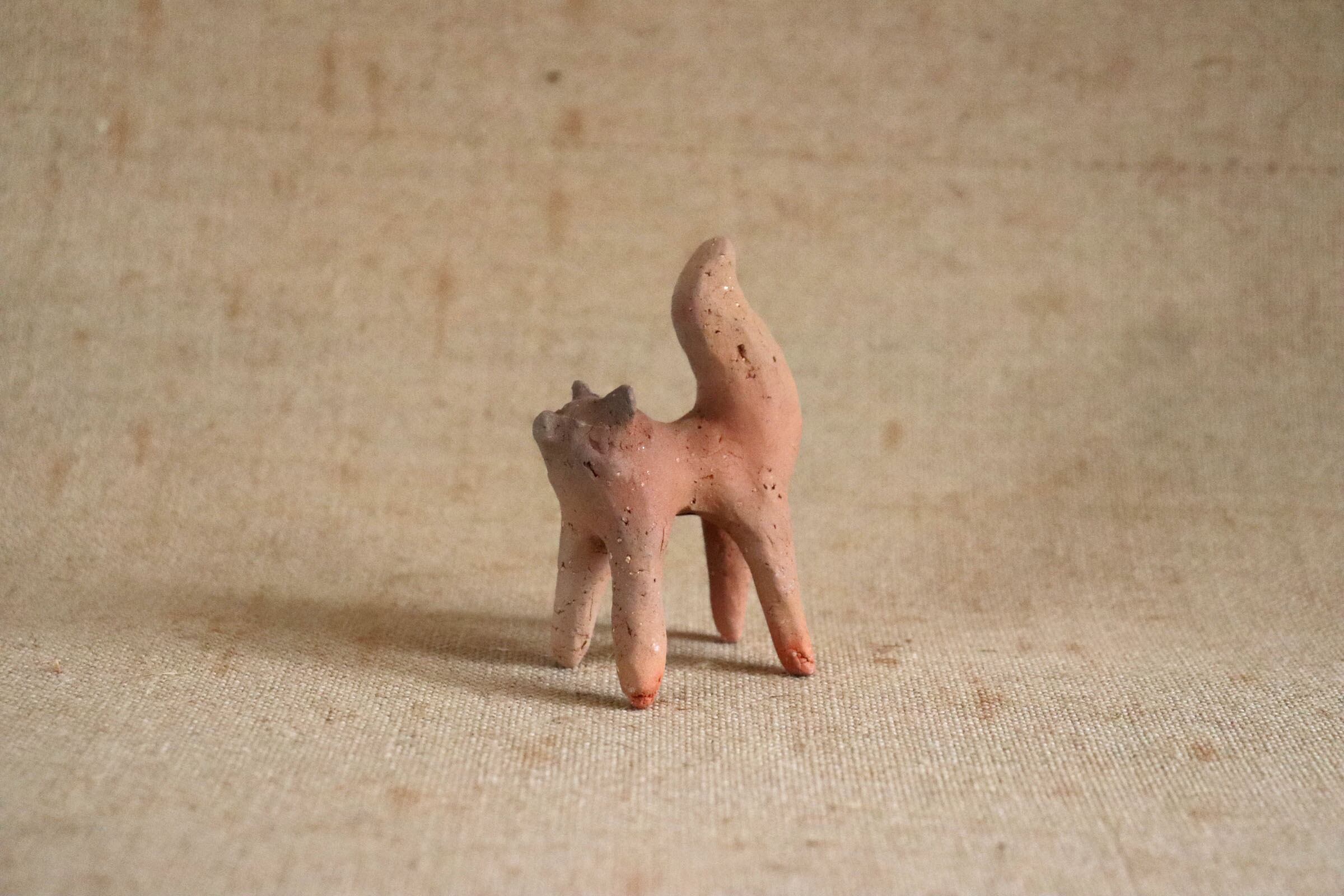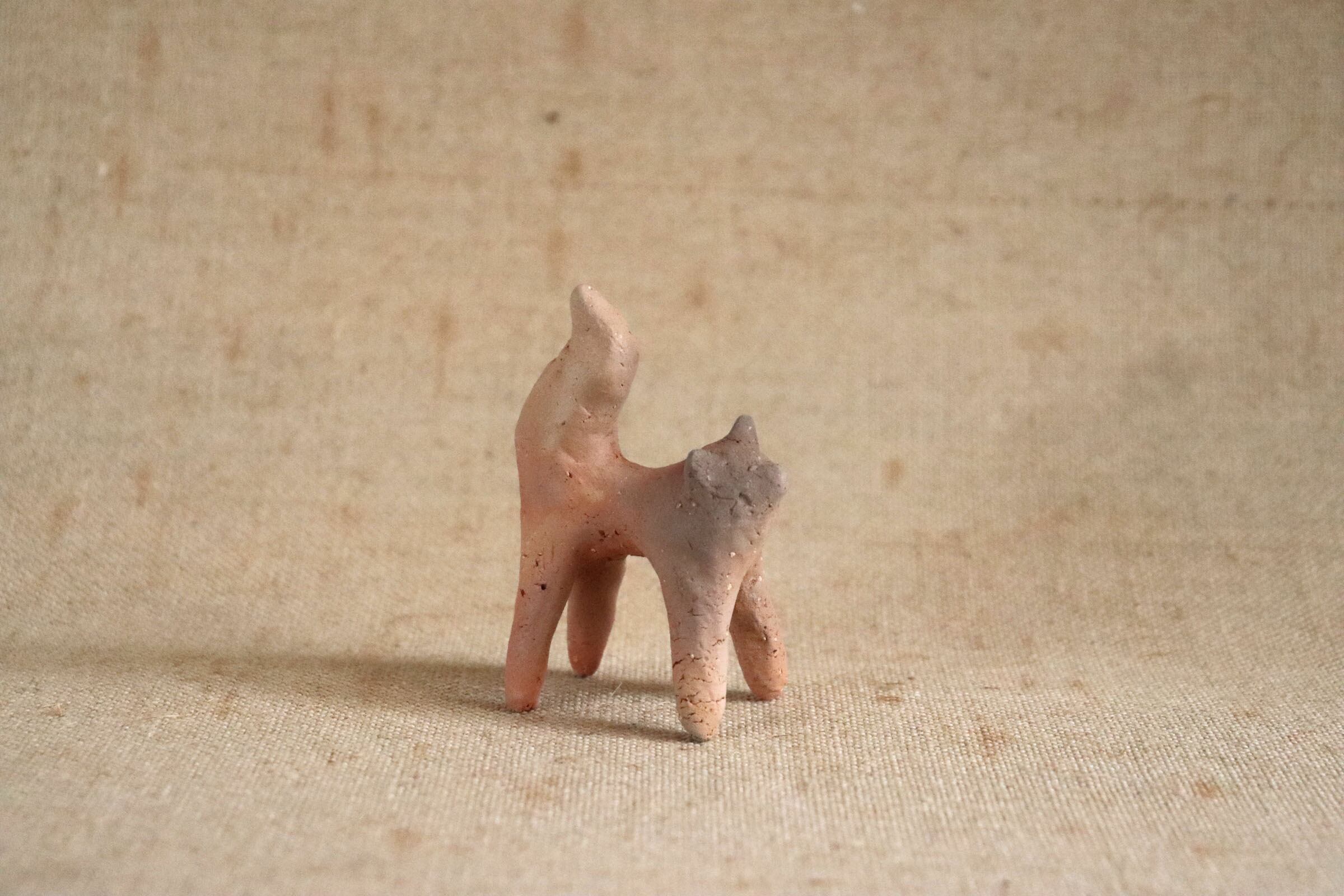 粘土でつくり、縄文時代の土器、土偶と同じように焚き火で野焼きしました。