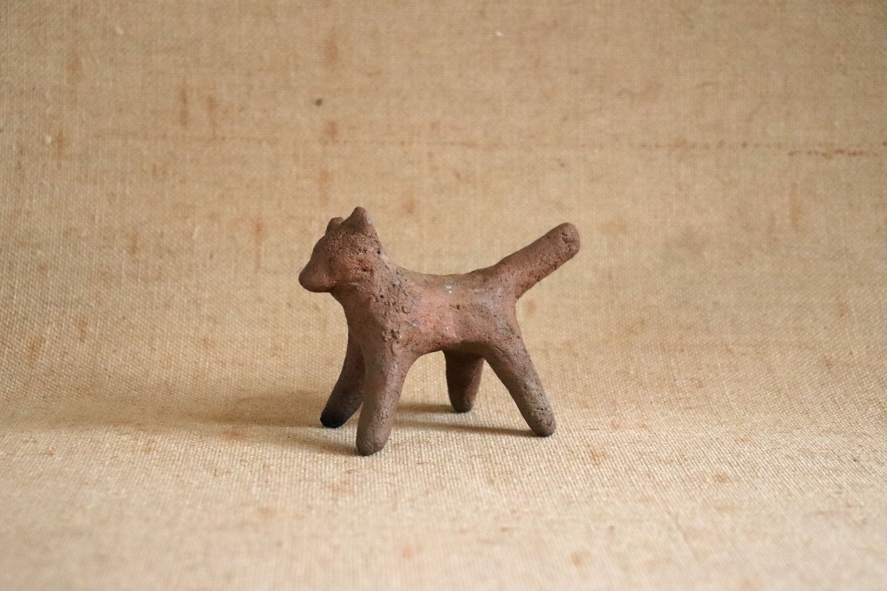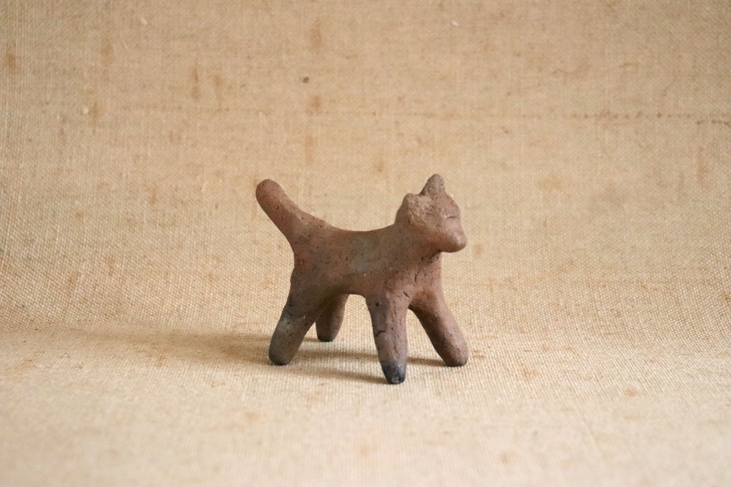 粘土でつくり、縄文時代の土器、土偶と同じように焚き火で野焼きしました。
