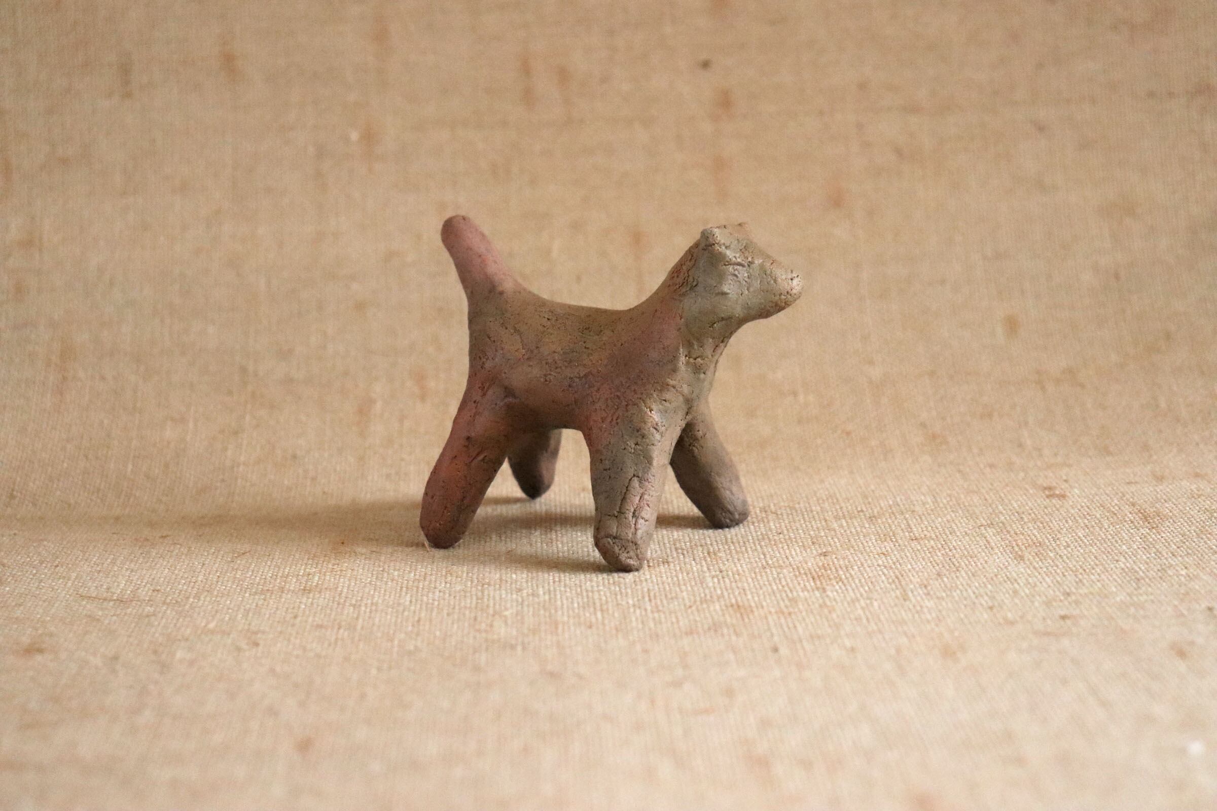 粘土でつくり、縄文時代の土器、土偶と同じように焚き火で野焼きしました。