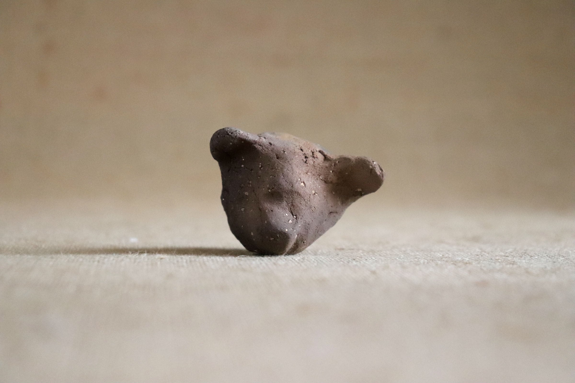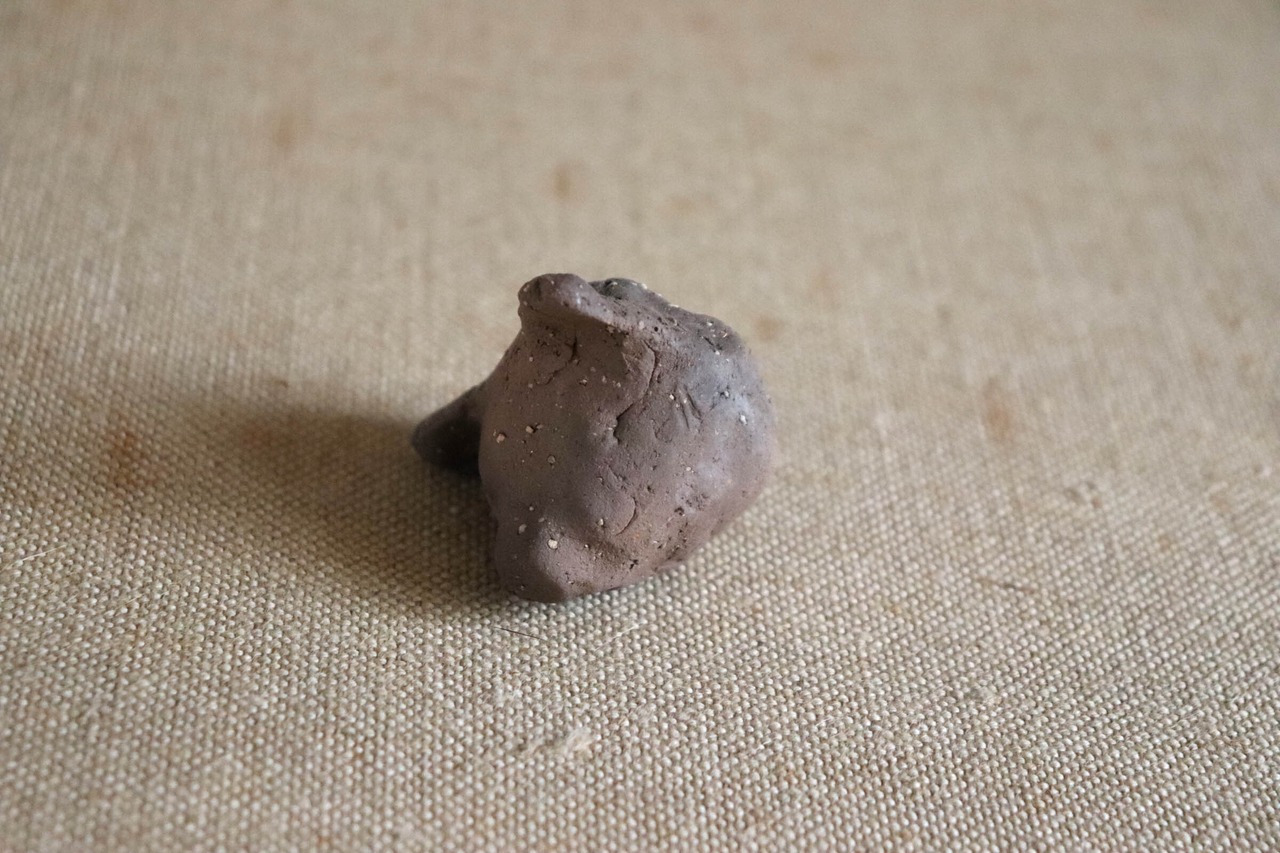 粘土でつくり、縄文時代の土器、土偶と同じように焚き火で野焼きしました。